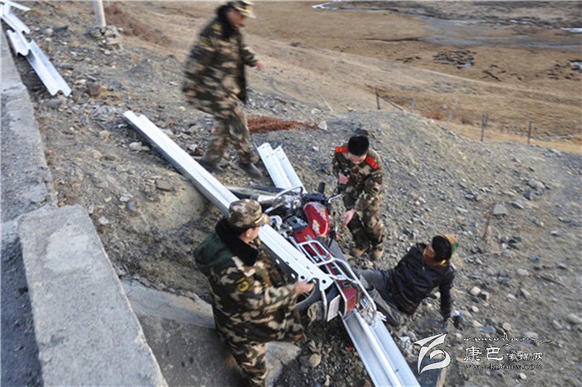 11月29日,甘孜州消防官兵在抗震救災途中,發(fā)現(xiàn)一名騎摩托車的青年摔倒在5米高的路基下,右腿被死死被壓住不能動彈。據(jù)了解,消防官兵結(jié)束道孚縣中古村安置點消防安全檢查,準備返回祖慶學校安置點,行駛至塔公鄉(xiāng)海拔4000米左右處,發(fā)現(xiàn)事發(fā)摩托車就在消防官兵所乘車輛前10米處。駕駛?cè)藛T是一名藏族青年,在他發(fā)動摩托車時,轉(zhuǎn)眼就摔倒掉下公路路基。