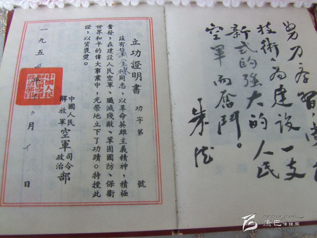 1954年12月10日,該校頒發(fā)的立功證明書上這樣寫道:“茲有肖金棟同志,以革命英雄主義精神,積極奮發(fā),在建設(shè)人民空軍、殲滅殘敵、鞏固國防、保衛(wèi)世界和平的偉大事業(yè)中,光榮地立下了功績。”證書上注明為三等功。