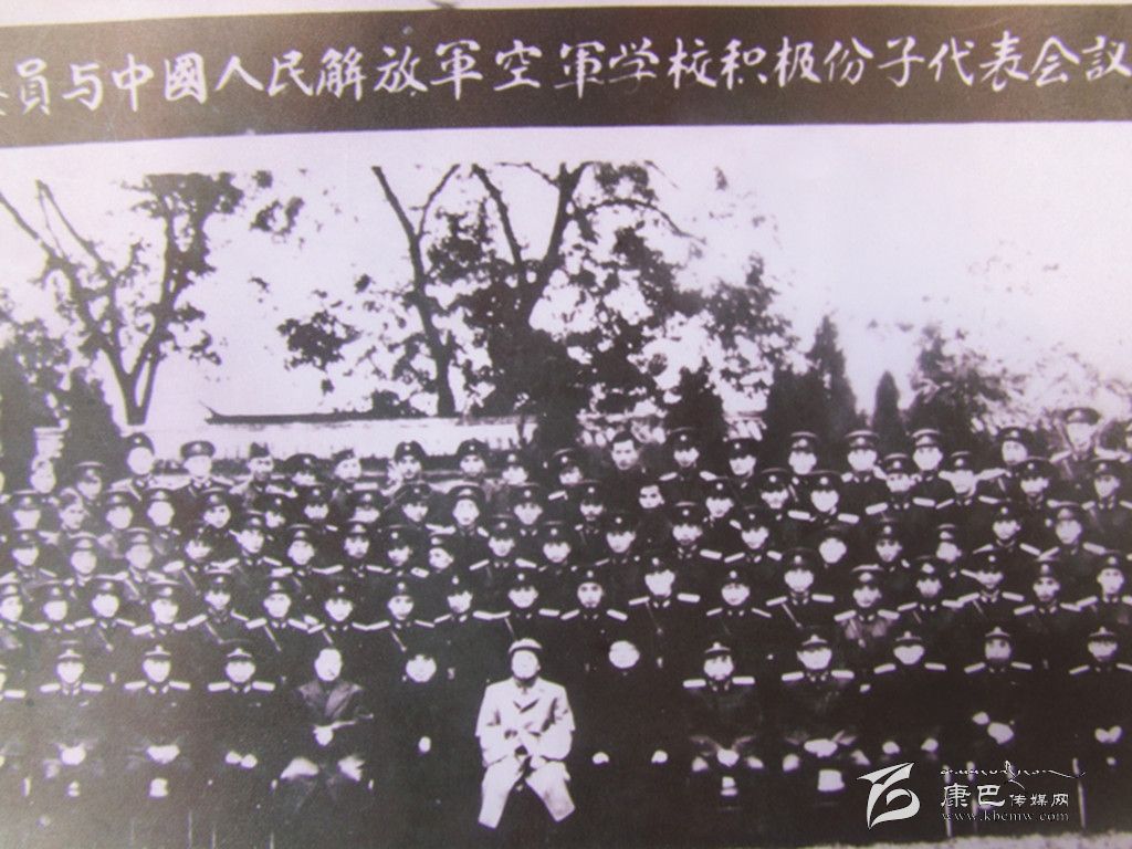 1956年10月28日,是肖金棟永生難以忘懷的日子。作為中國人民解放軍空軍學(xué)校積極分子的一員,肖金棟和全體學(xué)員在北京中南海懷仁堂受到了毛主席、朱德總司令和賀龍元帥的親切接見并合影。“當(dāng)時,我就站在毛主席身后的第三排,嗯,就是這個,你看像不像?”肖金棟指著拍攝了距今近60年的老照片興奮地對記者說。由于照片年代久遠(yuǎn),已經(jīng)難以辨認(rèn)每個人的面部表情了,但大致輪廓依然能夠看清楚。