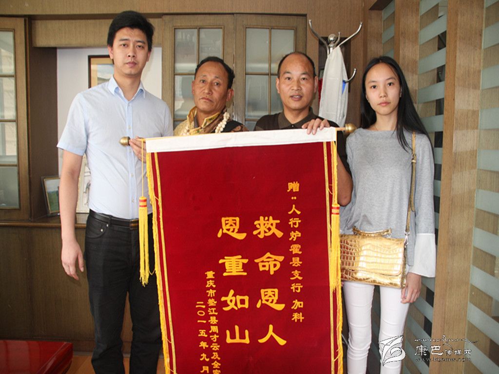 9月8日,重慶墊江人周才云攜女兒周瑩、女婿李超,從千里之外專程趕到人行爐霍縣支行向支行領導贈送“救命恩人,恩重如山”錦旗和感謝信。9月10日,爐霍縣委宣傳部在人行爐霍縣支行召開會議,對該行職工加科助人為樂的舉動進行表彰。
