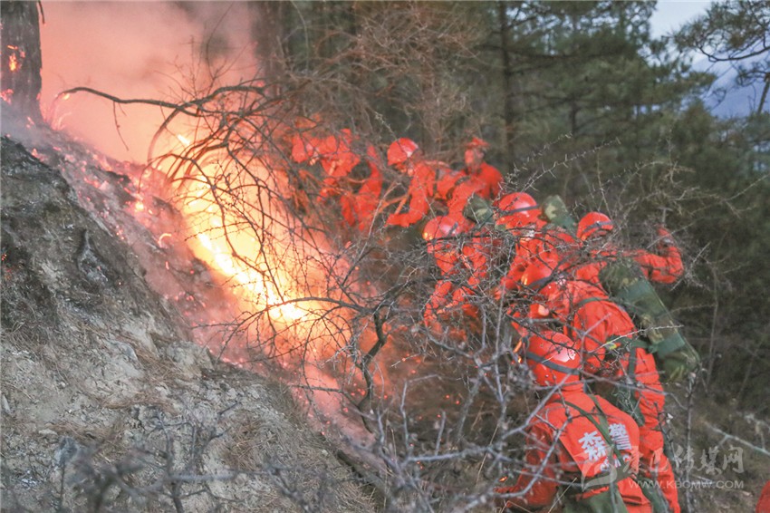 火災(zāi)發(fā)生后,武警甘孜森林支隊道孚大隊40名官兵迅速趕赴現(xiàn)場展開滅火工作。高原的夜晚氣溫雖然降至-14℃,但凜冽的寒風卻讓林火肆意蔓延,撲火官兵跟著火頭一路追擊,力阻火場面積擴大。19日凌晨,滅火官兵抓住清晨風力小、氣溫低的有利條件,向火魔發(fā)起進攻,殲火頭、撲余火、滅煙點、清火線,2小時30分鐘后完成了南線滅火作戰(zhàn)任務(wù)。隨后,道孚森林大隊官兵兵分兩路幫助地方專業(yè)滅火隊和撲火群眾清理煙點、站桿倒木。一路采取接力方式,采用水箱將山脊一處水源不間斷傳遞至火場一線,清理煙點;另一路運用油鋸、砍刀、組合工具對任務(wù)區(qū)戰(zhàn)桿倒木進行清理。