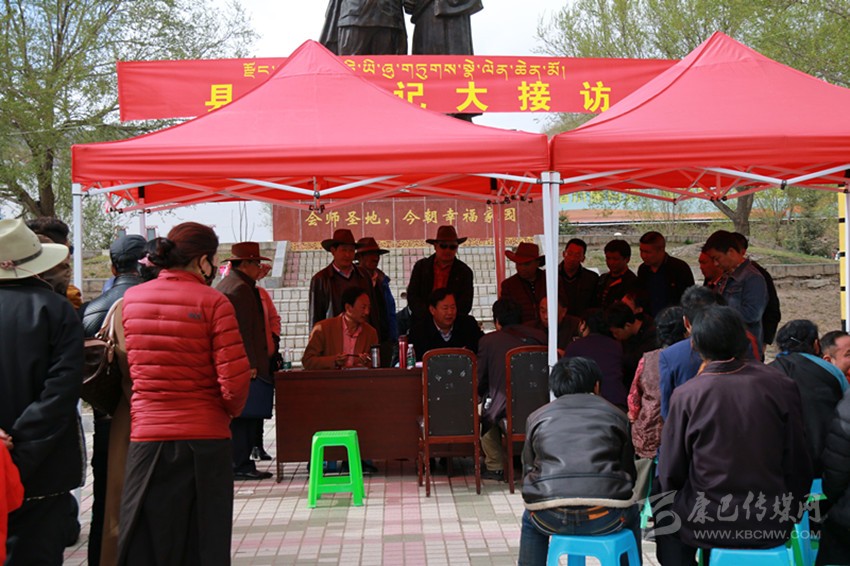 廣場(chǎng)上拉起了一條紅色橫幅,橫幅上書(shū)一行字“縣委書(shū)記大接訪”。紅色橫幅后面是開(kāi)國(guó)元?jiǎng)字斓潞蛺?ài)國(guó)活佛、大德高僧格達(dá)相互攙扶的雕像。雕像下,該縣各個(gè)局和部門(mén)的主要負(fù)責(zé)人都坐在塑料凳上,手里拿著筆記本,等著被該縣縣委書(shū)記雷建平“點(diǎn)名”。被點(diǎn)名的單位和負(fù)責(zé)人將和縣委書(shū)記一起,就群眾反映的問(wèn)題,解疑答惑,并當(dāng)場(chǎng)安排落實(shí)。為了多接訪一些群眾,兩天來(lái),午飯時(shí)間,該縣縣委書(shū)記和干部都在廣場(chǎng)泡面充饑。