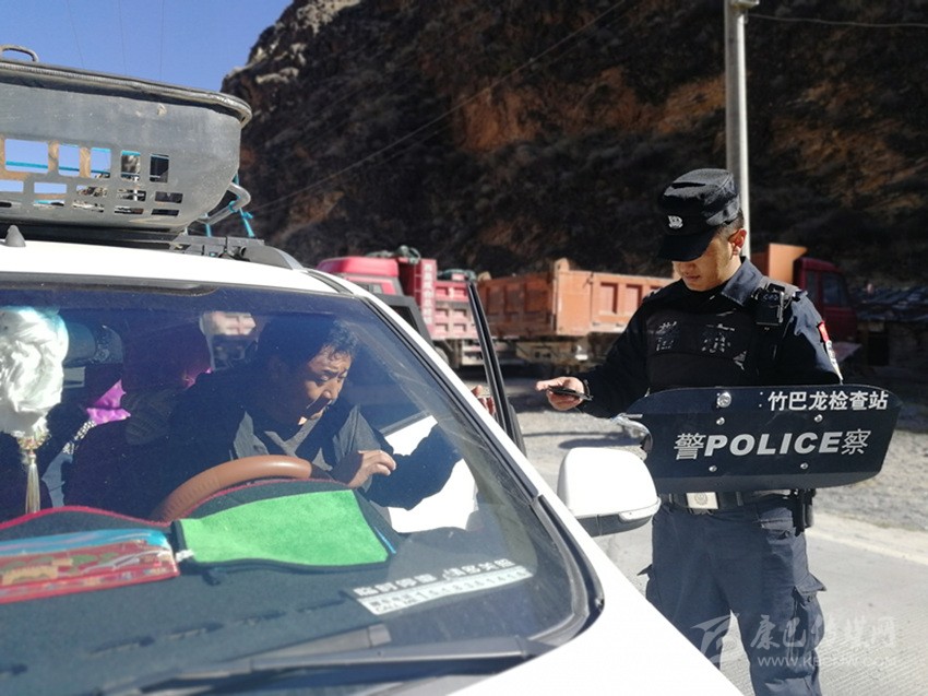 竹巴籠派出所(檢查站)民警對過往車輛例行檢查。