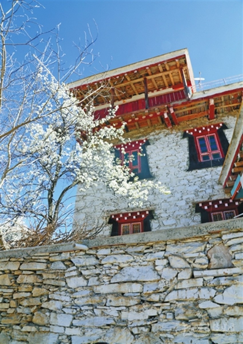 步入藏寨,藏式花紋的窗欞外懸掛著火紅的辣椒和金黃的玉米。朱紅色的大門上刻著藏式圖騰,客廳里色彩鮮艷、雕龍畫鳳的藏式餐桌上則擺滿了當(dāng)?shù)厥a(chǎn)的時令瓜果。室內(nèi)房間干凈整潔,有寬大的床鋪、客廳和洗手間,手捧香甜的酥油茶,倚窗而立,樹葉隨風(fēng)擺動,似乎在訴說著少女心中對外面世界的向往。