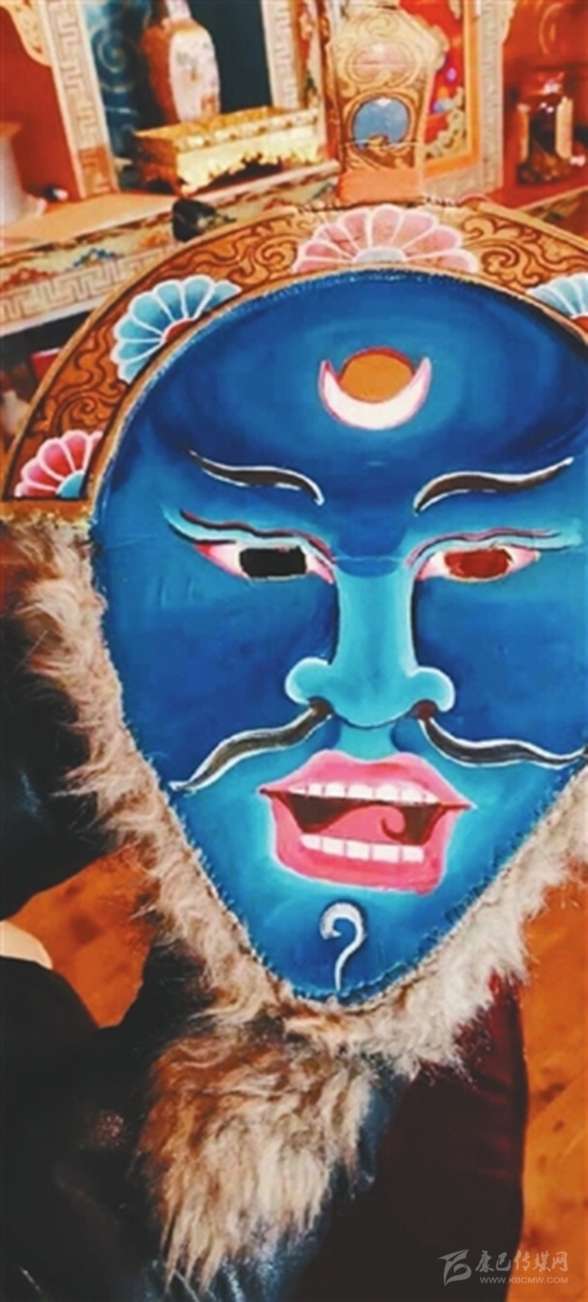 42歲的洛桑平措是寺廟藏戲團的戲師。他身形高大,體態(tài)微胖。張帆問他唱什么角色的時候,他指自己的肚子,笑著說:“以前瘦,什么都能演,現(xiàn)在胖了,只能演國王或者大臣。”洛桑平措不僅嗓音好、藏戲唱腔音色亮,還擅長做藏戲面具。他家的立柱上,掛著一個黃色的面具,是跳扎西秀巴的時候戴的;又從院子里拿過來一個泥巴塑的面具,面相立體,只待過兩天就往臉上貼布頭?!安碱^貼好干透之后上色,跳昂巴要用這個面具。”按照理塘寺的傳統(tǒng),昂巴的面具是立體的,和扎西秀巴的平面面具不一樣,和其他藏區(qū)的也不一樣。