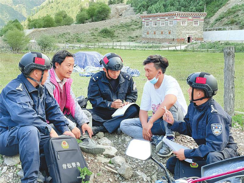 “成功救援后,我們回到派出所就馬上換下打濕的衣褲,喝了幾杯熱茶?!睗扇守暡颊f(shuō),感覺(jué)好些了之后,給有點(diǎn)紅腫的雙腿涂上藥膏,他們便回到崗位繼續(xù)工作?!吧砼<标P(guān)頭就應(yīng)該挺身而出?!辈稍L中,澤仁貢布和軍軍如是說(shuō)。