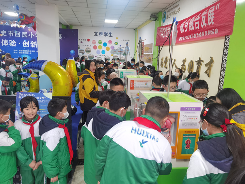 這是回民小學(xué)第三屆校園科技節(jié)活動上的精彩一幕,每年的科技節(jié)都是該校全體師生翹首以盼的“重頭戲”。今年的科技節(jié)以“逐夢九天,強國有我”為主題,由康定市教體局、康定市科協(xié)主辦,回民小學(xué)承辦,希望學(xué)生們能夠在科技實踐、體驗和創(chuàng)新中把握未來。