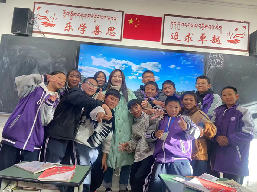 今年10月份,孫川茗還在道孚中學(xué)開(kāi)展了一次英語(yǔ)教學(xué)示范課。課堂里,她從英語(yǔ)學(xué)習(xí)的四個(gè)維度:語(yǔ)言能力、學(xué)習(xí)能力、思維品質(zhì)和文化意識(shí)開(kāi)展,讓學(xué)生聽(tīng)說(shuō)、糾正語(yǔ)音語(yǔ)調(diào)等,把課堂的主動(dòng)性“還”給學(xué)生,得到了師生的歡迎。