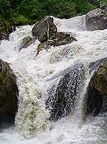 溝外交通與燕子溝大致相同,從南門關(guān)溝至兩河口14.5千米,在這里分做兩條路,一條往西南去牛園子和冰川,一條往西北去蟲草棚子(二號營地)和冰川。這里沒有食宿,道路艱險(xiǎn),馬不能通行,需要當(dāng)?shù)叵驅(qū)А?/p>