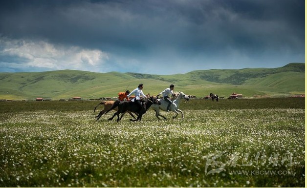 每年春天至中秋時節(jié),百花爭艷斗奇,草原上先后開出黃、白、粉紅、藍、淡黃等不同顏色的野花,奇跡般地為草原定時換上盛裝,使草原由金黃奪目轉換成潔白無瑕的花海,再變成粉紅色的海洋……叫人疑為人間仙境,她真的不愧是獨具特色、名副其實的七彩草原。在花叢中頭枕大地,仰望蔚藍色的天空,薄紗似的白云輕輕飄過,遠處傳來悠悠的牧歌聲,多么令人遐想和向往。